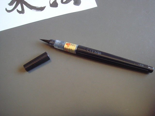 この暑さに負けずに 【 ぺんてる筆ペン 】 で熱い字を書きました。