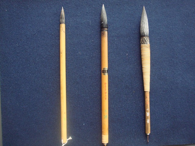一番細いのが桐箱の箱書き用。 ( この筆でも書いた 一番左 )