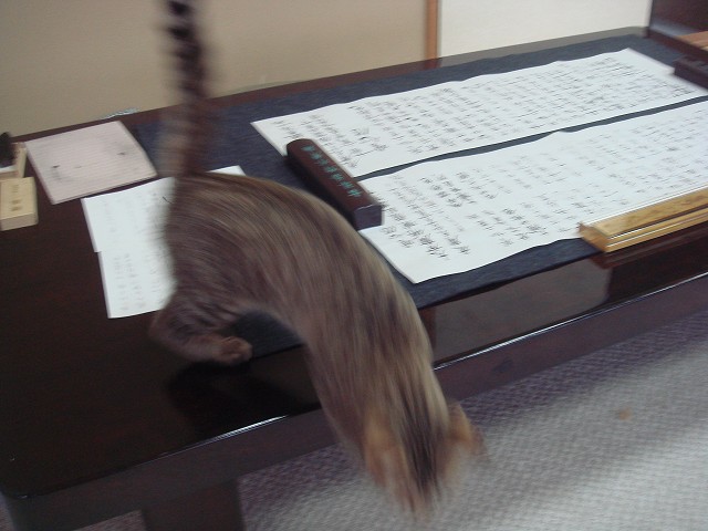 硯は片付けていたので ・・・ 押されずにすんだ。