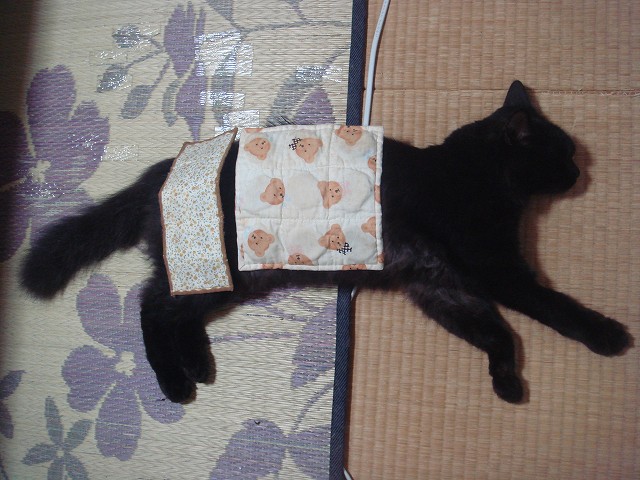 術後はかなり冷えるので備長炭のキルトを下腹に ・・・ 永久磁石のキルトを腰に巻きつけた。