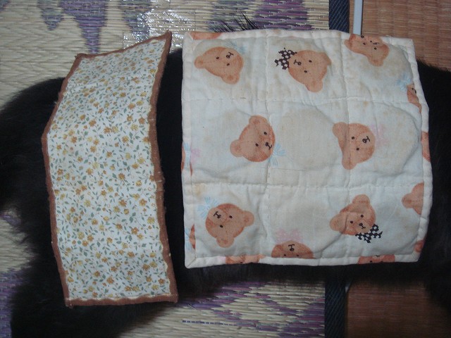 可愛い熊の四角いキルトと細長いキルト ・・・ 中に何が入っているかと言うと