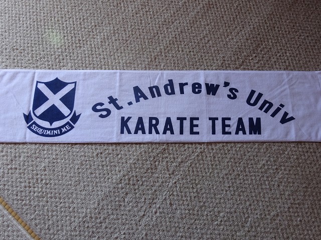 【 St. Andrew's University KARATE TEAM 】 と書かれたスポーツタオル。
