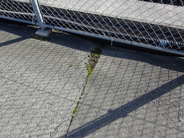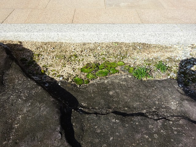 今朝の事 本堂の前のアスファルトの切れ目に沿って苔が ~