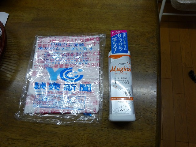 配達してくれて ~ 税込みで ~ 景品のおまけ付。