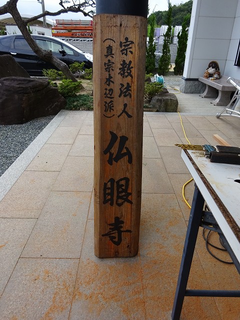 寺の看板を架けかえること。