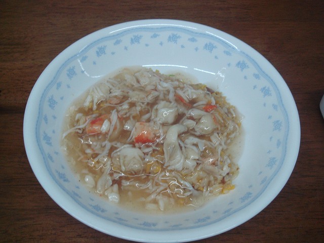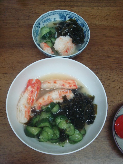 昨晩はお母さんにとカニの酢の物とカニのあんかけチャーハンを作った。