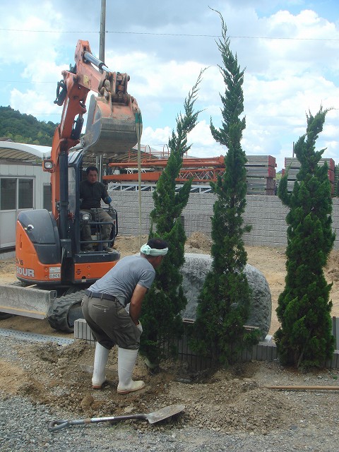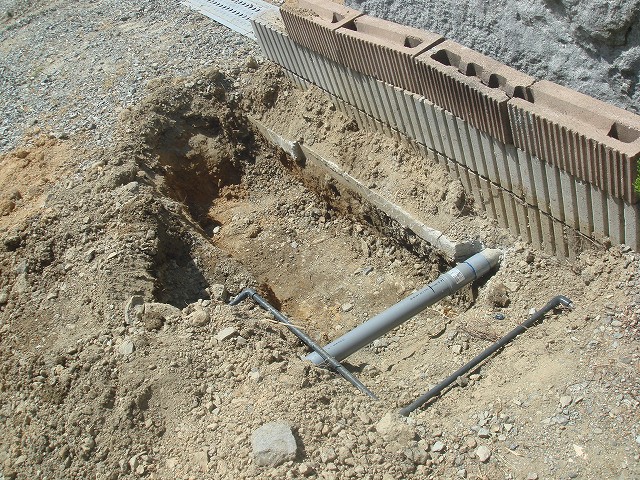 二枚目の写真が樹を植えるために迂回し修理した水道管。