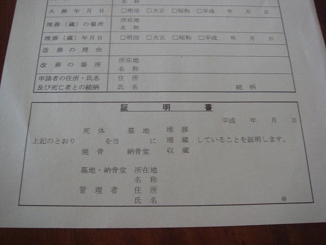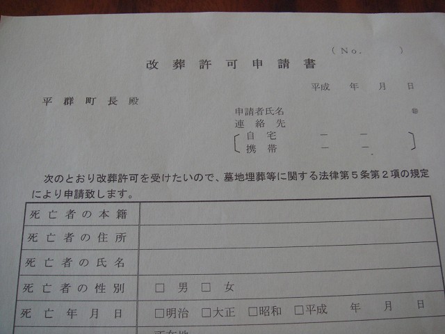 本日 奈良県生駒郡平群町役場に改葬許可申請を提出しに行きます。