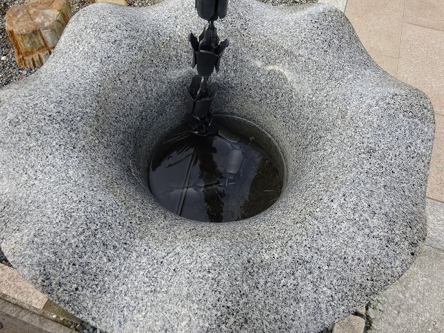 昨日の朝に天水受けの水が凍った。