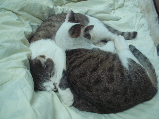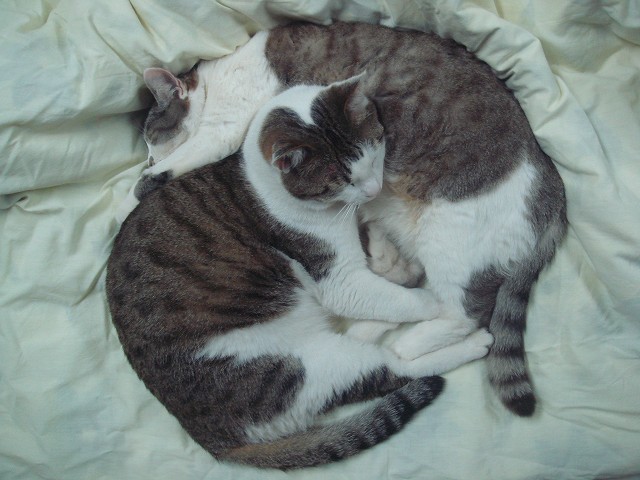 すると ~ 母ネコの福と長男の空がご覧の通り !
