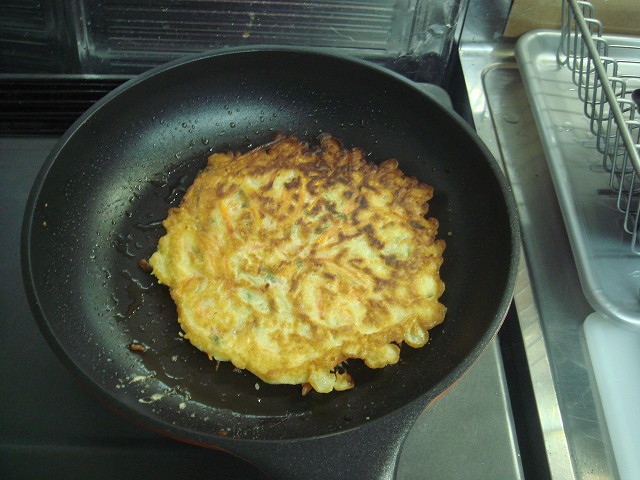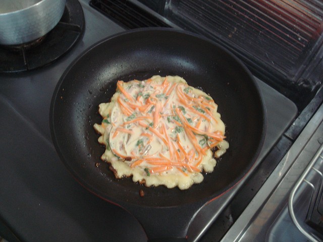でっ ! 春にんじんの薄焼きのお好み焼きを作った。