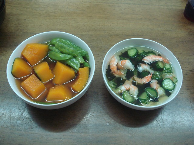 キュウリとナンキンとシソの葉とキヌサヤは姫路の林田のゆたりんの地物。