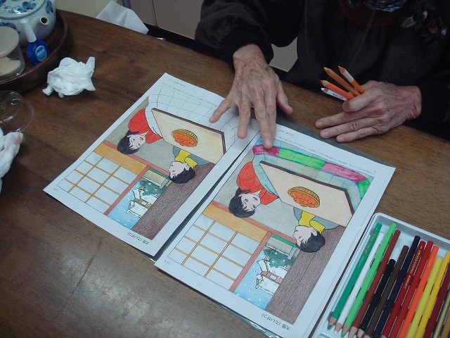 ディ・サービスの施設に提出した二枚の塗り絵。