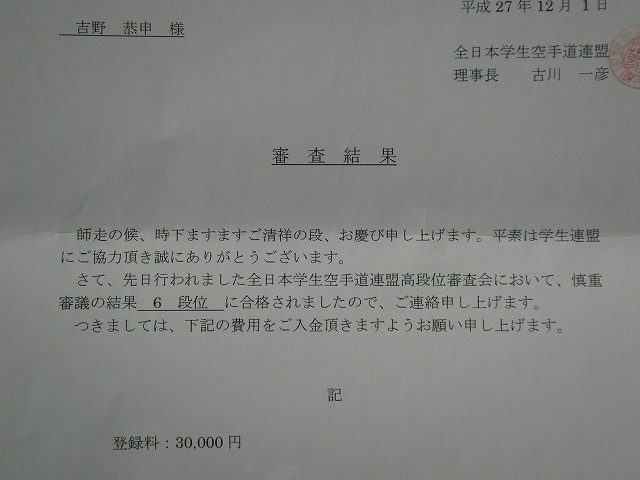 その間 関西学生空手道連盟の常任理事の席だけは置いていた。