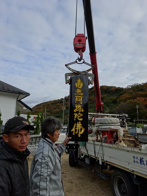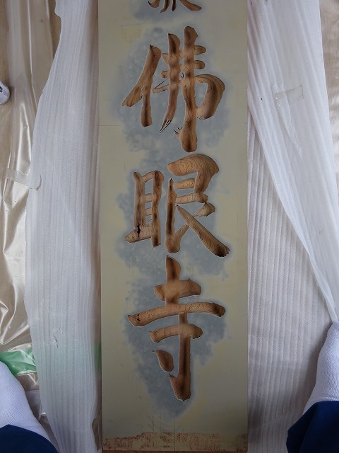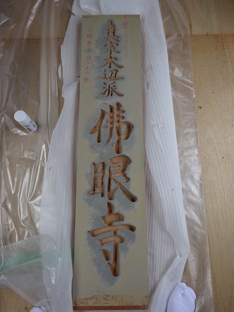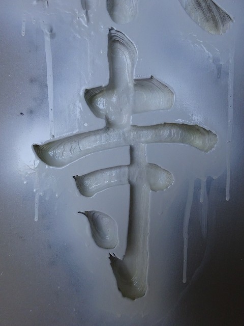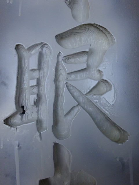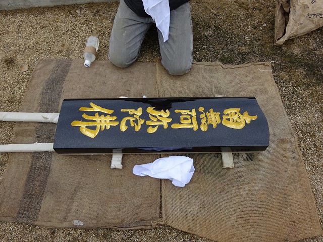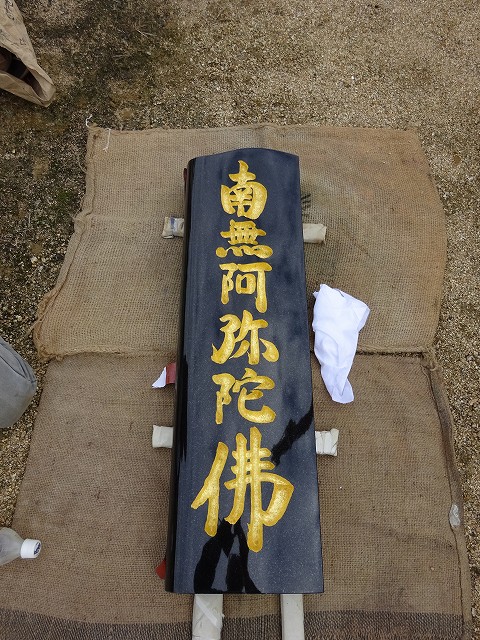 下蓮華・上蓮華の穴を開け石碑に貼ったゴムをはがし