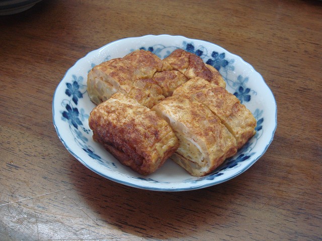 だし巻き玉子は玉ねぎとジャガイモの微塵切りをしっかりバターで炒めたものを
